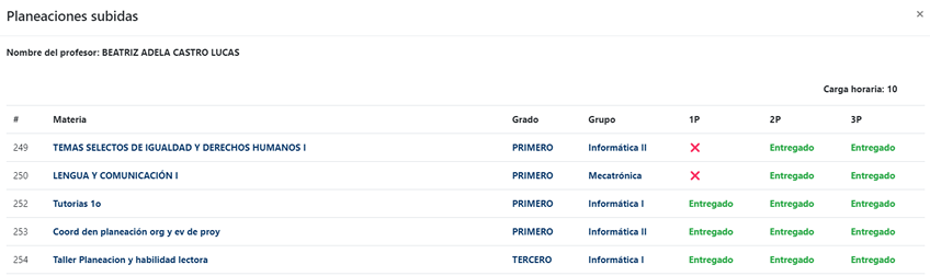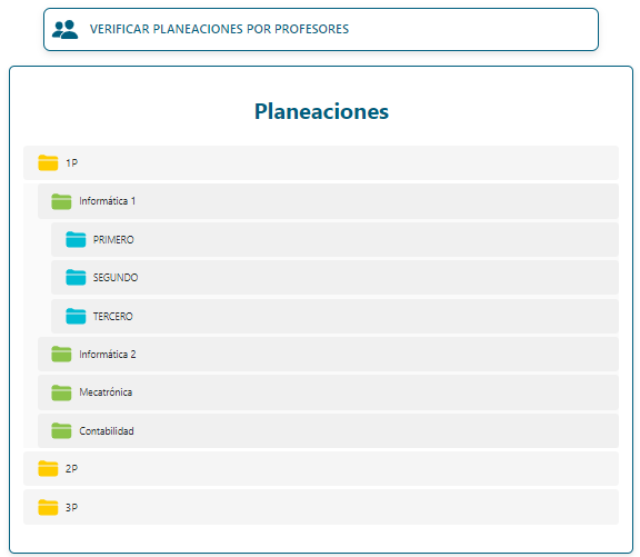 Permite descargar y procesar planeaciones. Muestra las planeaciones por maestro