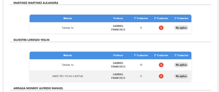 Permite visualizar de manera fácil alumnos reprobados, permitiendo con esto prevenir exámenes extraordinarios
