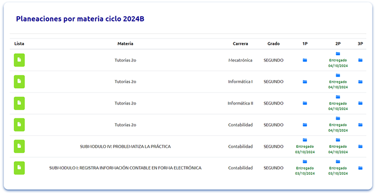 El profesor puede imprimir la lista de alumnos, y subir sus planeaciones por cada materia que tiene asignada